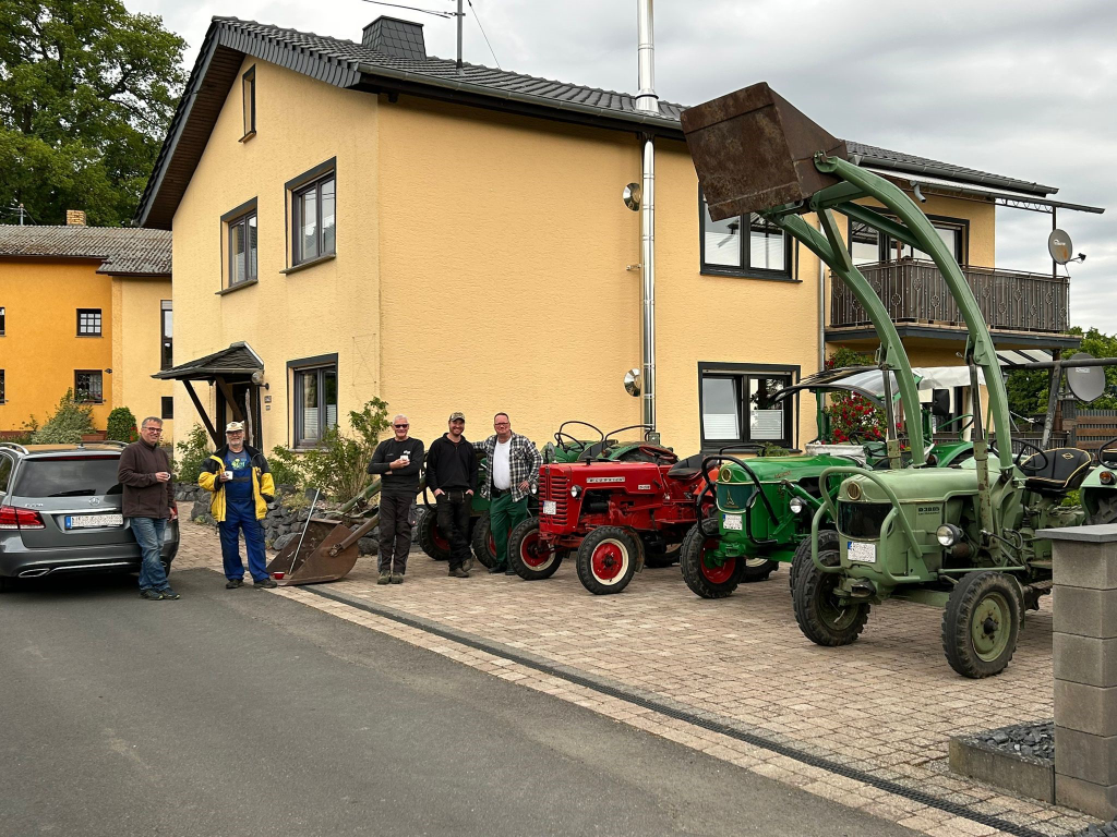 Ortsbürgermeister Franz-Peter Dahl spricht mit betroffenen Bürgern über die Verkehrssicherheit in Oberplag. Der schlechte Zustand